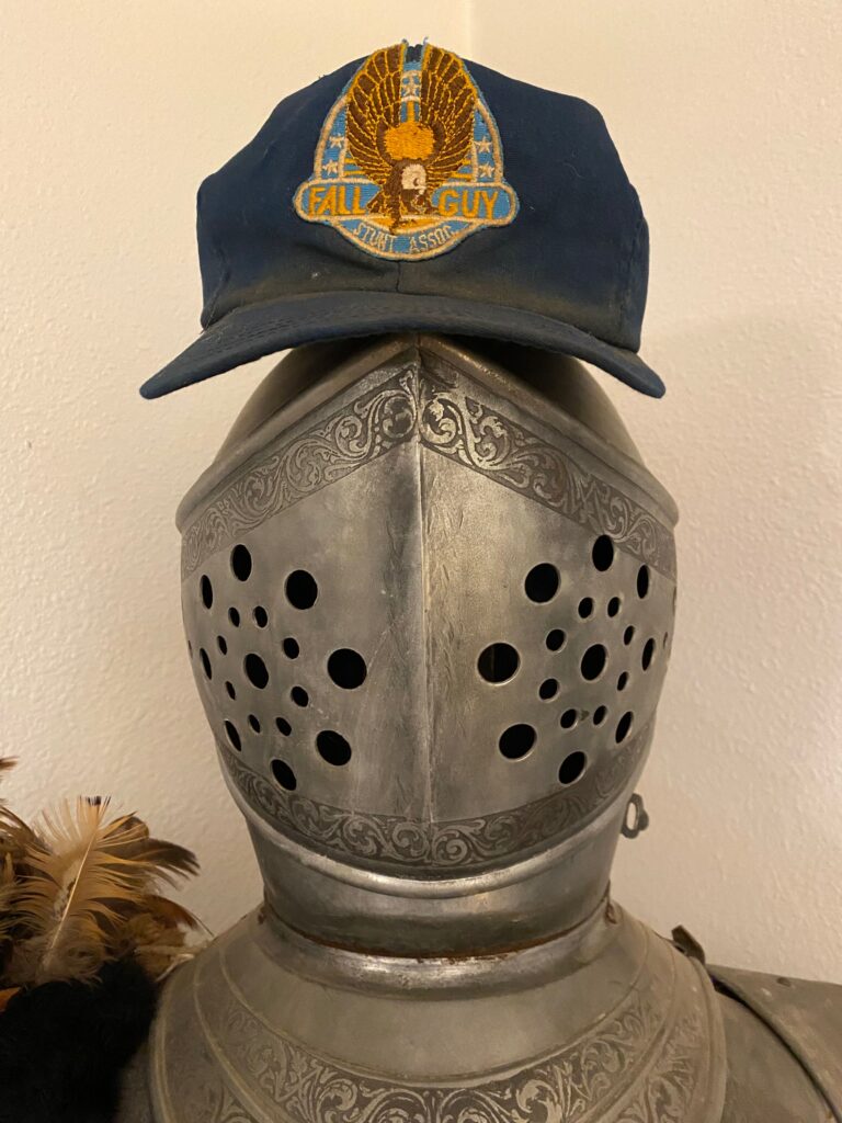 …One well-worn forty-two-year-old baseball cap worn by the Fall Guy himself, Colt Seavers (AKA Lee Majors), and now precariously balanced on the head of Sir Elvis: