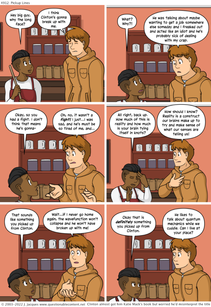 No other strip has ever offered me what I see here. Self-aware robots, gay stars, lesbian stars, transexual stars (and bots), even straights, and much more of the delightfully weird abound.